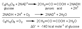 to two pyruvate molecules, only leads to a 140 kcal fall in free