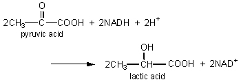 pyruvate is reduced to lactate, using up all of the NADH from glycolysis:
