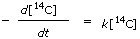 are used because they have an immediate physical meaning. The exponential decay curve (fig 4 opposite) can be used to give the rate law a physical meaning. The rate of change of concentration with time, d[C-14]/dt, is simply the slope of the first-order decay curve at any time, t. Because carbon-14 is disappearing, the slope
